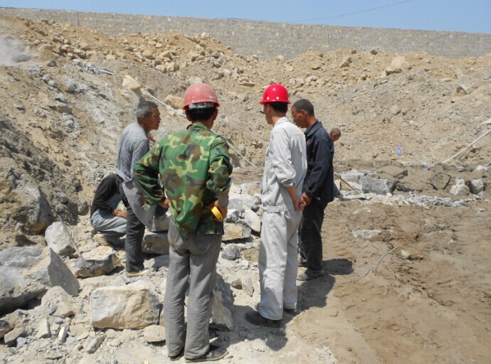 主罐區毛石基礎砌筑,姜總指導工作